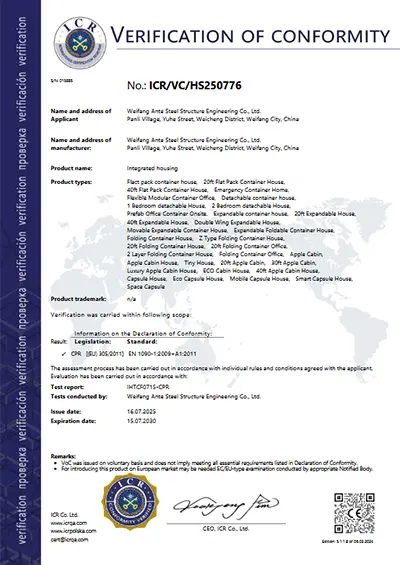 We hebben in 2024 120 eenheden Apple Cabin in Canada gebouwd, 500 eenheden Flat Pack Container House naar Rusland geëxporteerd in 2024 en 800 eenheden Refuge House gebouwd met de Iraakse regering in 2023, bouwde 50 eenheden Flat Pack Container House in het Verenigd Koninkrijk.